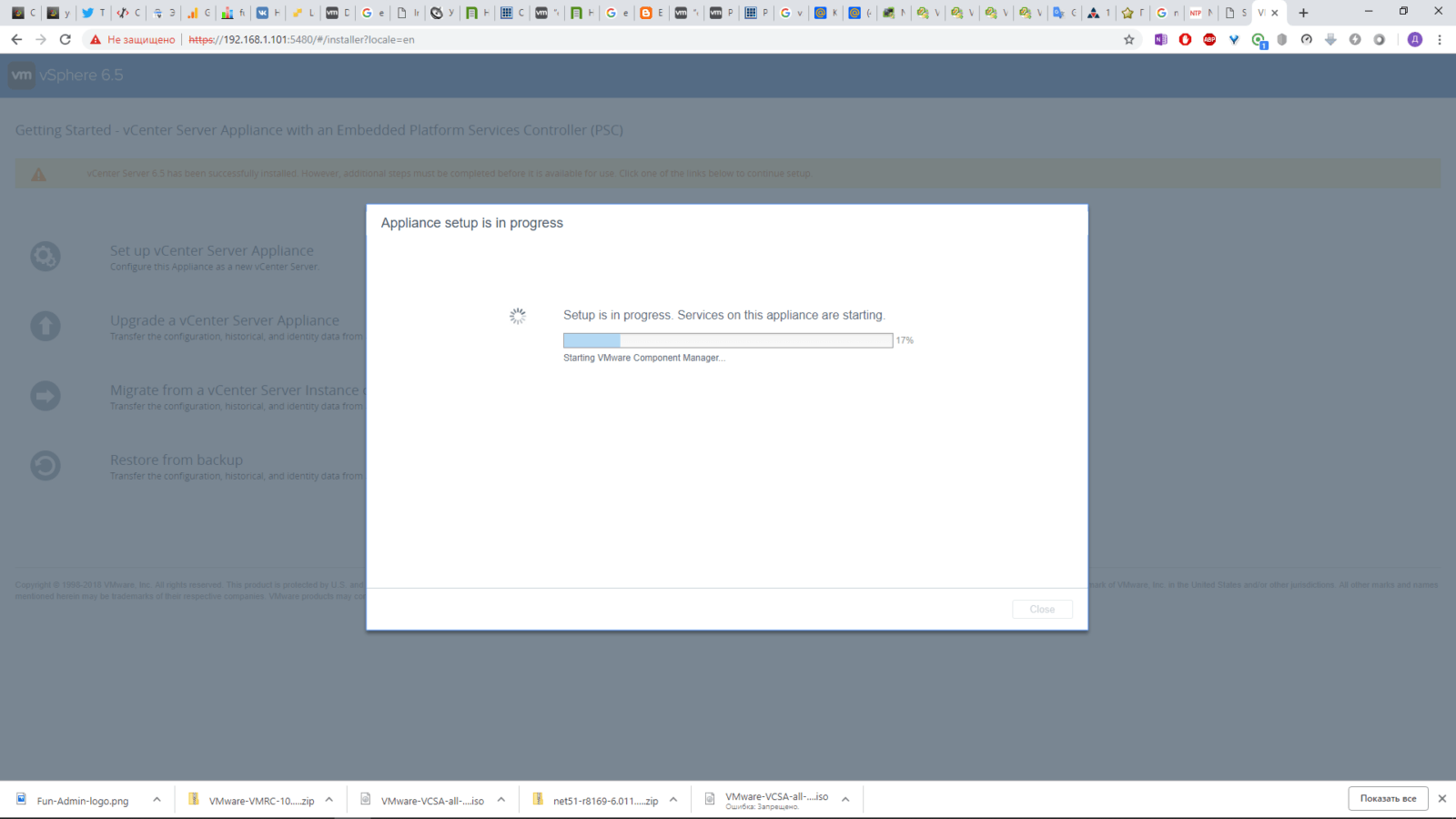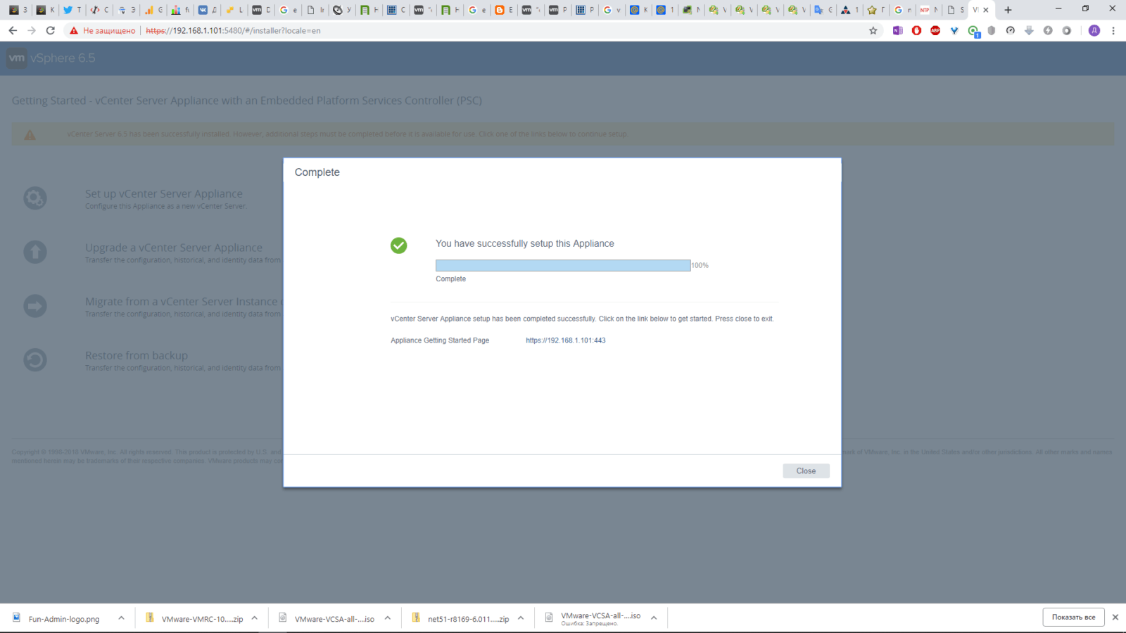 Вот так происходит установка VCenter Server Appliance 6.5. О его настройке постараюсь написать позже, если кому-то интересно.