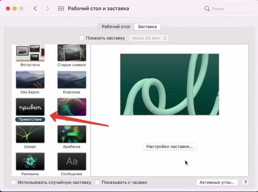Сделали новый скринсейвер «Приветствие». Он такой же, как на iMac 24. Заставка отображается на разных языках.