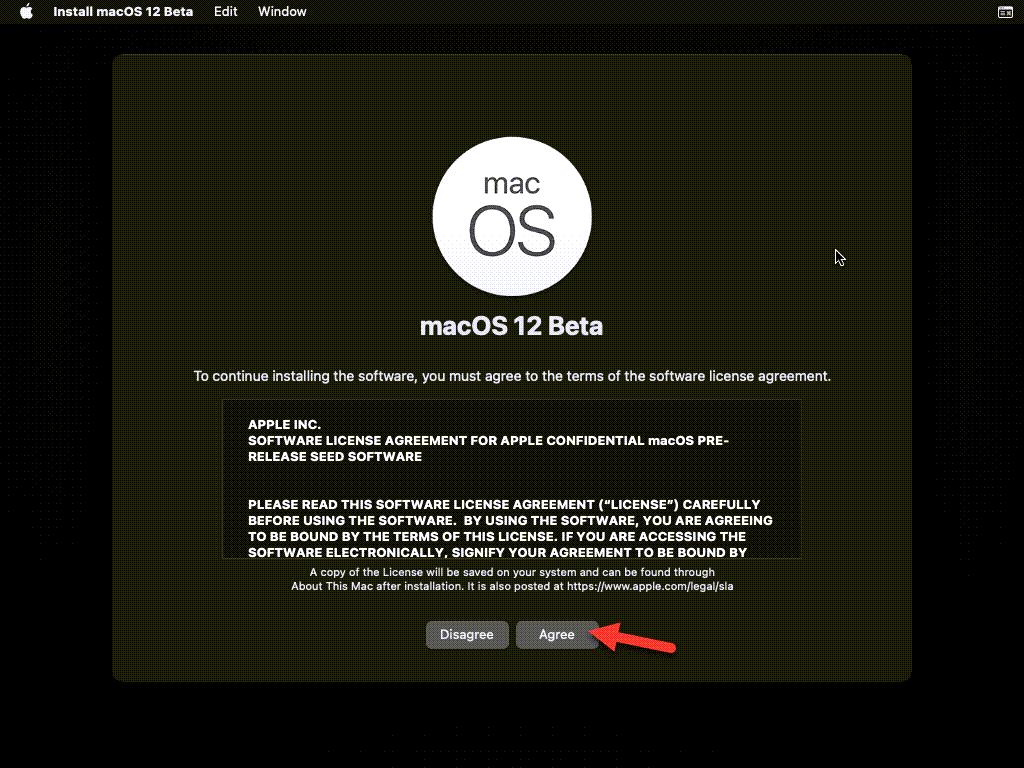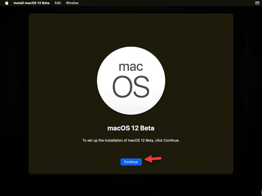 Теперь выберите «Установить macOS 12 Beta» и нажмите «Продолжить».