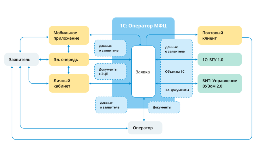 Практически все учётные системы в университете реализованы на платформе «1С:Предприятие», а блок, отвечающий за работу со студентами, — на конфигурации БИТ:ВУЗ. Изначально в качестве платформы для МФЦ рассматривали эти две системы. Но руководство будущего МФЦ озвучило требование: сделать единую систему, чтобы операторам не приходилось переключаться между тремя-пятью базами данных.
