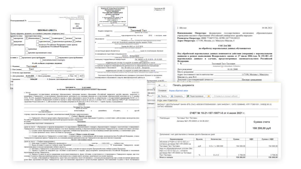 - Пример должен работать с базами данных РУДН, в которых находятся учётные данные по контингенту, приказы, договоры с обучающимися и так далее.