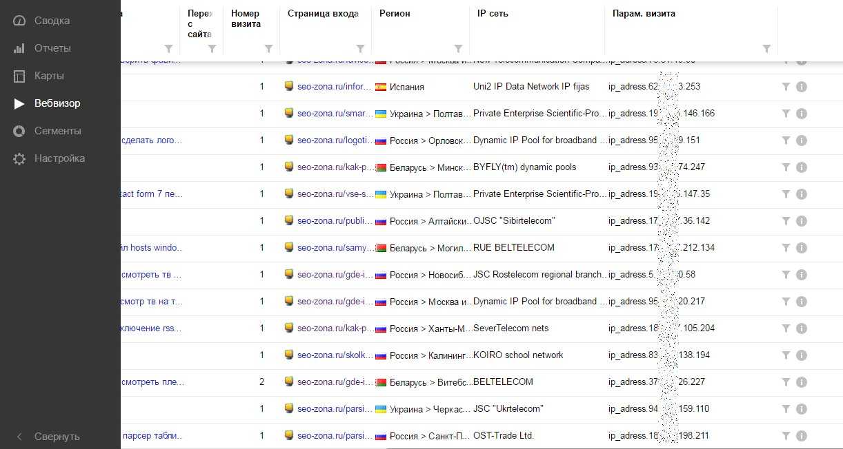 Но IP-адреса пользователей Яндекс.Метрика шифрует, предоставляя для анализа лишь IP-сеть и название провайдера. Впрочем, реализовать отображение IP в Метрике не так уж и сложно