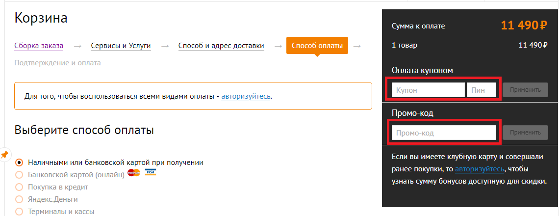 Чтобы активировать купон, действуйте по следующей инструкции: