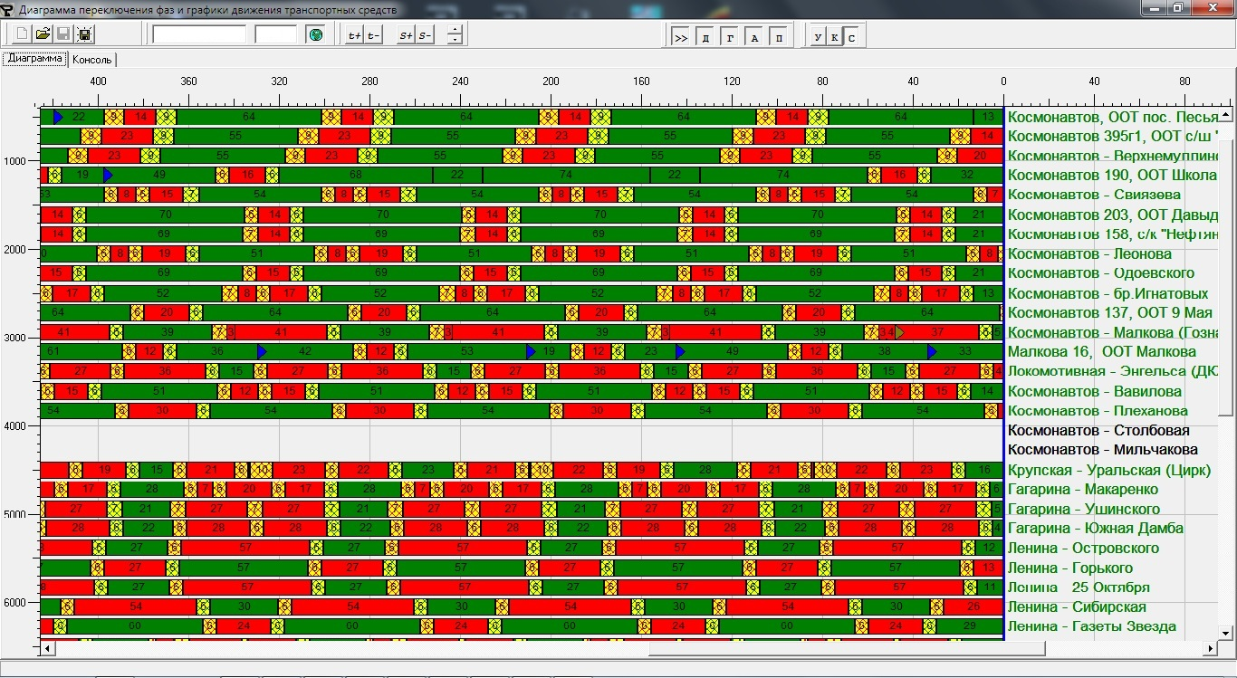 - управление фазовыми переходами светофорных сигналов, а также непосредственное управление сигнальными группами (направлениями движения) от Центра управления;