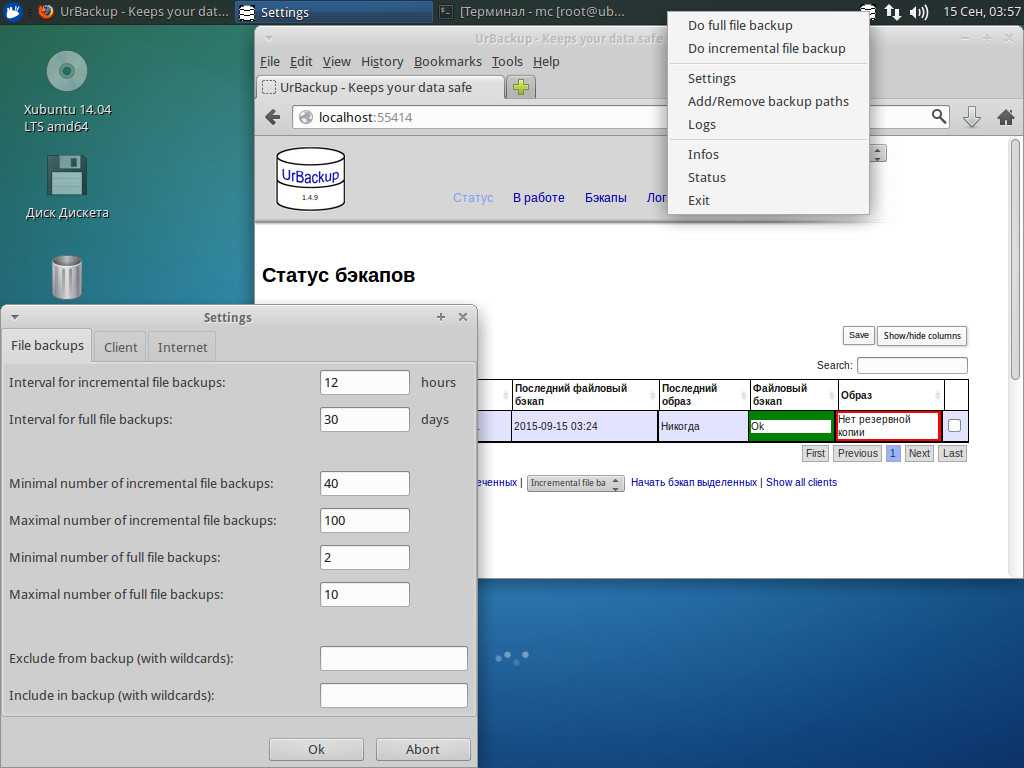 - Поддерживаемые бэкапы: Full, Incremental, Differential, Mirror.