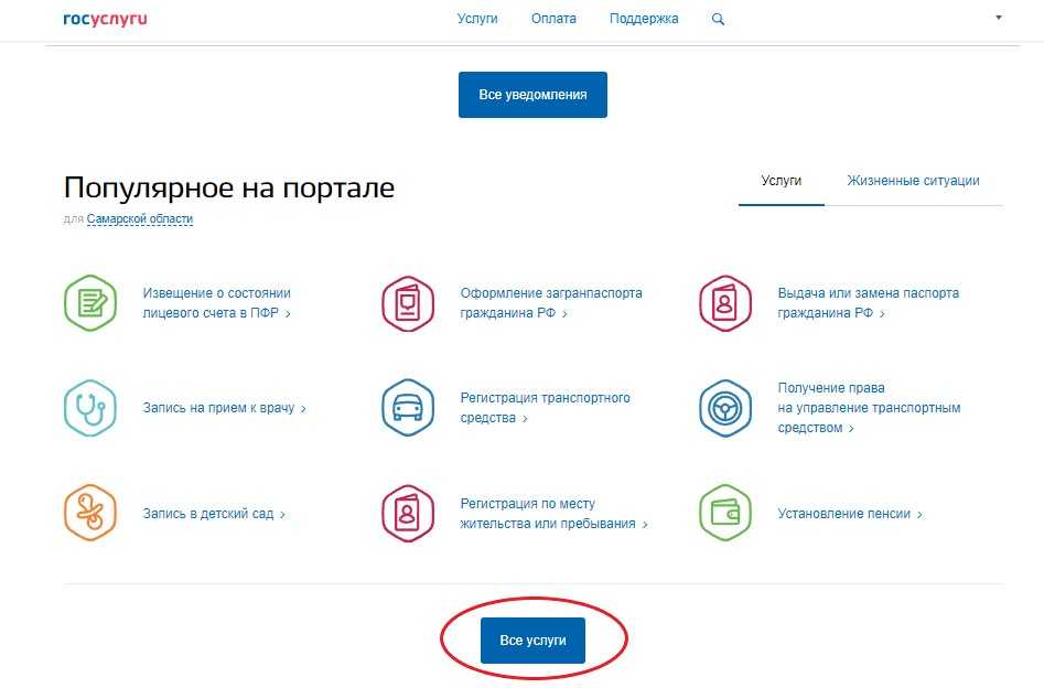 На главной странице сайта находят кнопку «Все слуги» и кликают на нее.