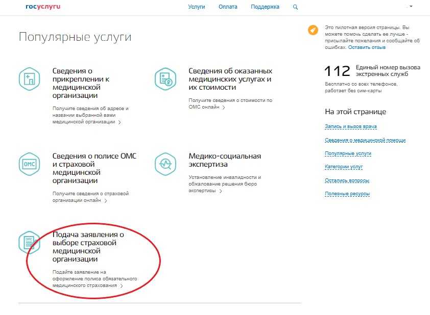 В разделе «популярные услуги» находят пункт «Подача заявления о выборе страховой медицинской организации». Нажимают на него.