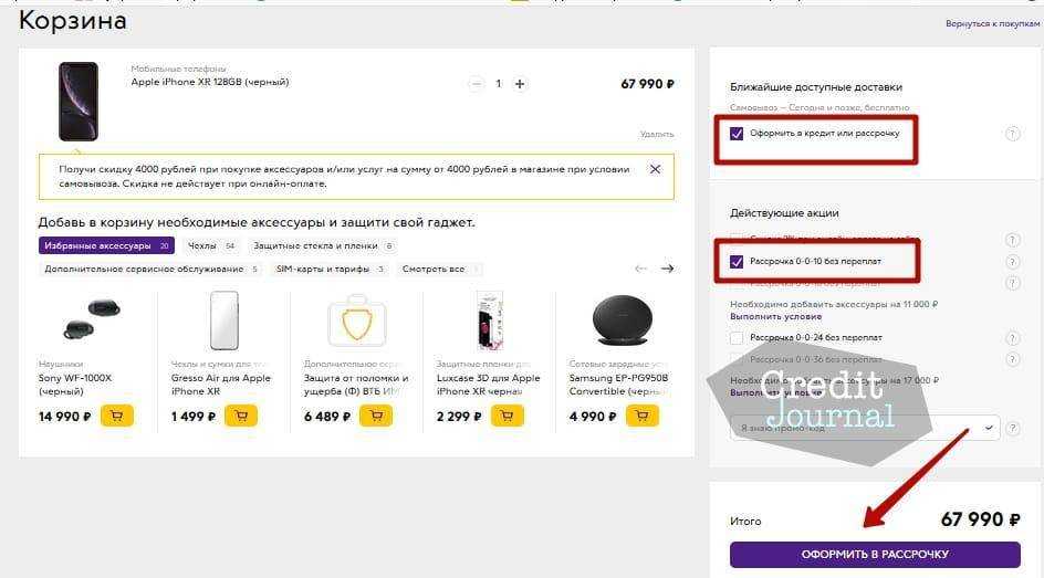 - Выбрать ту модель телефона, которая продается в рассрочку.