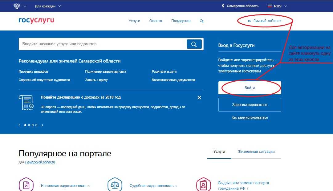Входим в учетную запись портала (если ее нет, регистрируемся).