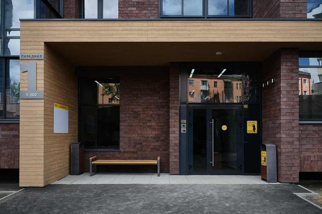 — Большой холл, стеклянные входные двери, которые дают больше света и установлены на уровне земли, чтобы мамам с колясками было удобно выходить на прогулку. Подъезд дома оснащен двумя сквозными входами. С одной стороны можно подъехать к подъезду, чтобы разгрузить тяжелые сумки, а с другой — отпустить ребенка во двор, минуя проезжую часть.