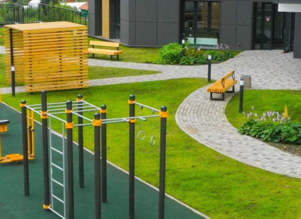 — Двор-парк будет разрастаться постепенно, – рассказывает Алена Ермакова. – Пока для жителей первых домов предусмотрено место для активного отдыха и релаксации, на которой размещены детская и спортивная площадка, деревянная беседка, изготовленная на заказ.
