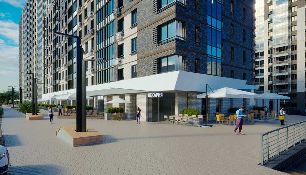 Возвращаясь к теме экономии времени, можно отметить, что у жителей «Новых горизонтов» будет возможность купить продукты, кофе, свежую выпечку, заняться фитнесом, воспользоваться банковскими услугами в непосредственной близости от своего места проживания. Первые этажи домов вдоль улицы Пушкина предназначены для стрит-ритейла, имеют панорамное остекление и широкий пешеходный бульвар.