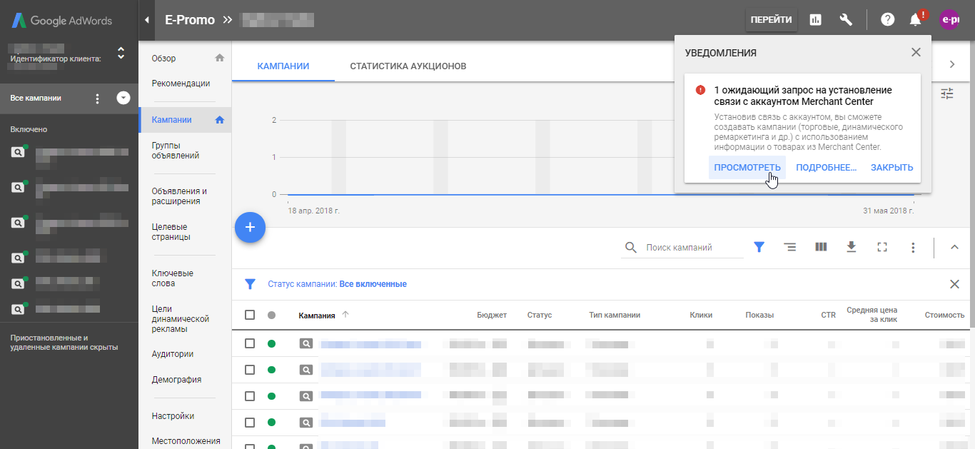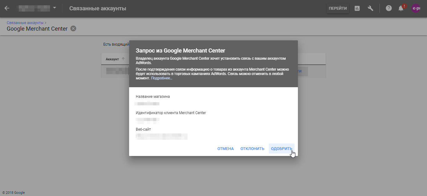 Остается лишь принять приглашение в Google Ads. После этого в рекламном интерфейсе вы сможете создавать торговые кампании,динамический ремаркетинг и умные торговые кампании.