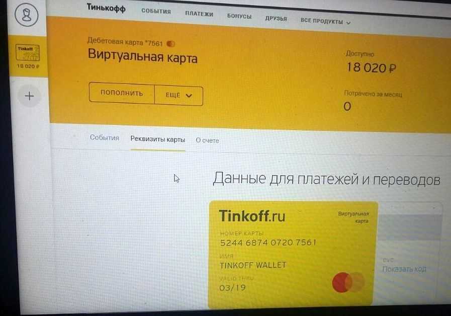 Местоположение вирткарты в Личном кабинете Тинькофф