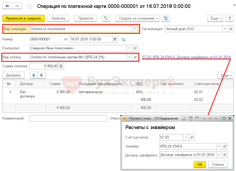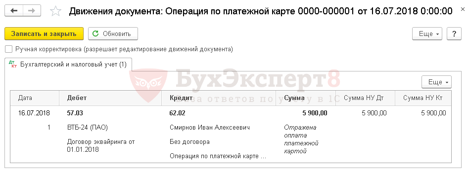 Оплата платежной картой в 1С 8.3 Бухгалтерия.