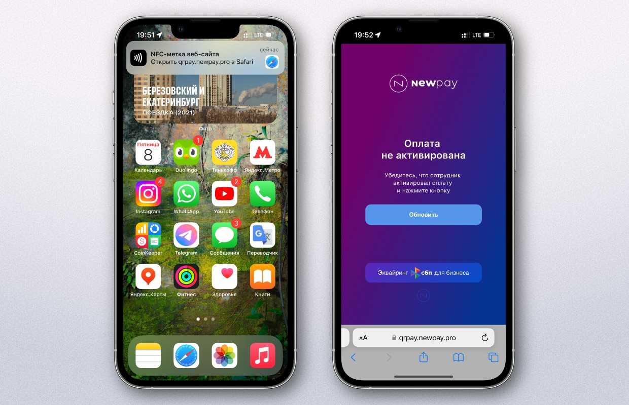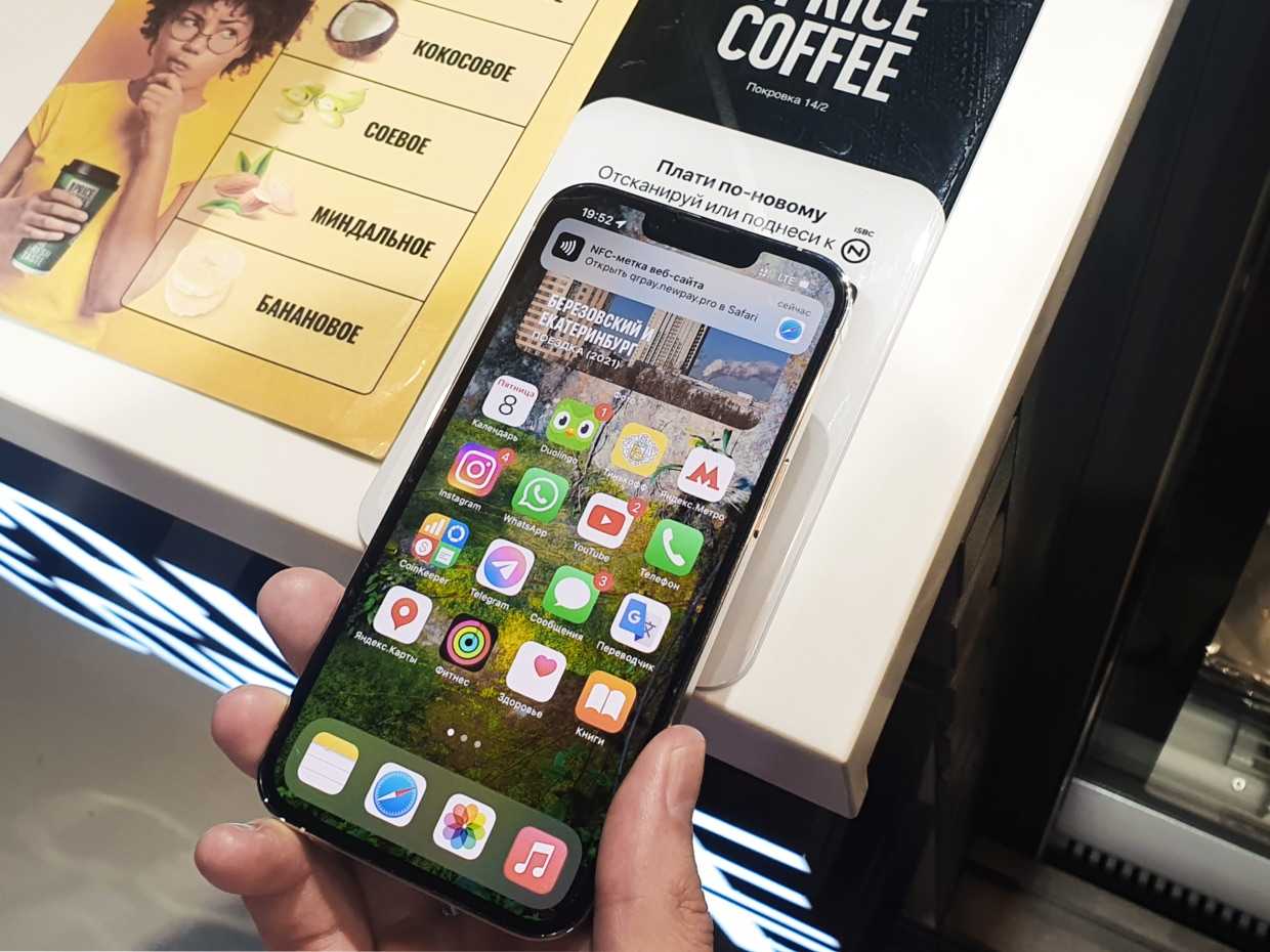 В One Price Coffee есть таблички с QR для оплаты и NFC модулем, которые работают в том числе с iPhone. Да, вы подносите смартфон, и на разблокированном экране выпрыгивает Push с ссылкой на окошко перевода в СБП. Для проведения транзакции продавец запрашивает сумму через терминал.