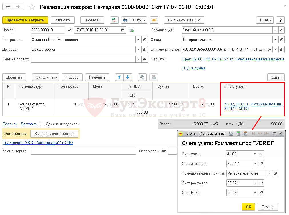 - Счет учета расчетов с контрагентом — 62.01 «Расчеты с покупателями и заказчиками».