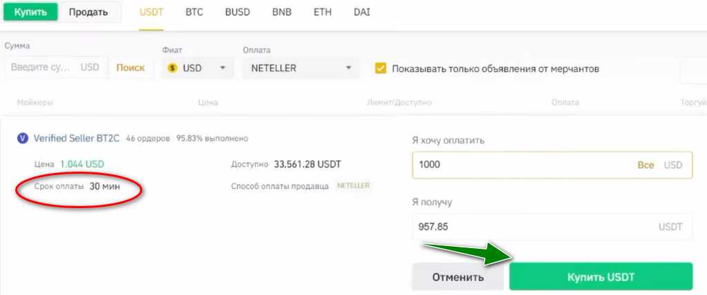 Проверяем эти данные и нажимаем опцию «Купить USDT».