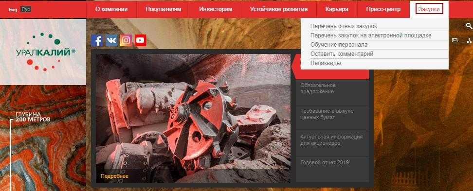 Неудивительно, что такое масштабное производство постоянно нуждается в поставках товаров и услуг. Закупки ПАО «Уралкалий» осуществляются постоянно на нескольких торговых площадках, включая официальный портал закупок самого предприятия.