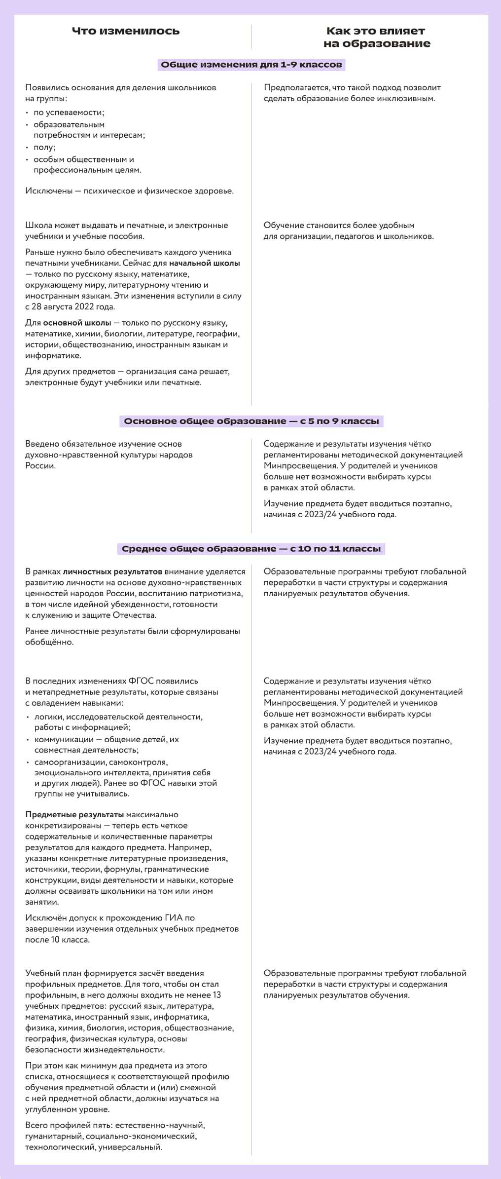 Федеральные государственные образовательные стандарты обновляются примерно раз в 10 лет. Новые ФГОС утверждены в конце 2019 года, а во втором квартале 2020-го обновились все школьные программы. Окончательный переход на новые ФГОС произошёл в сентябре 2021 года.