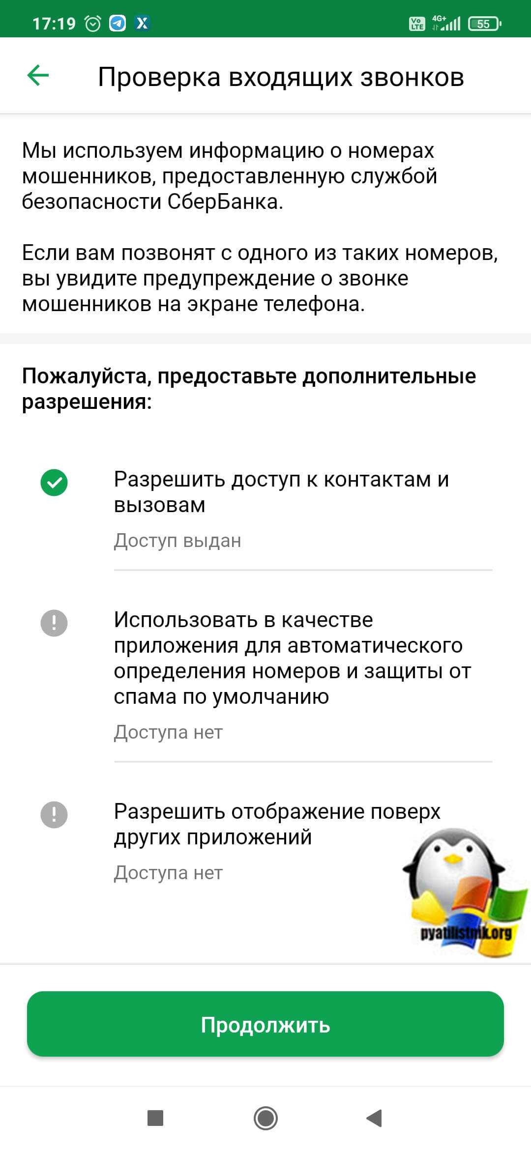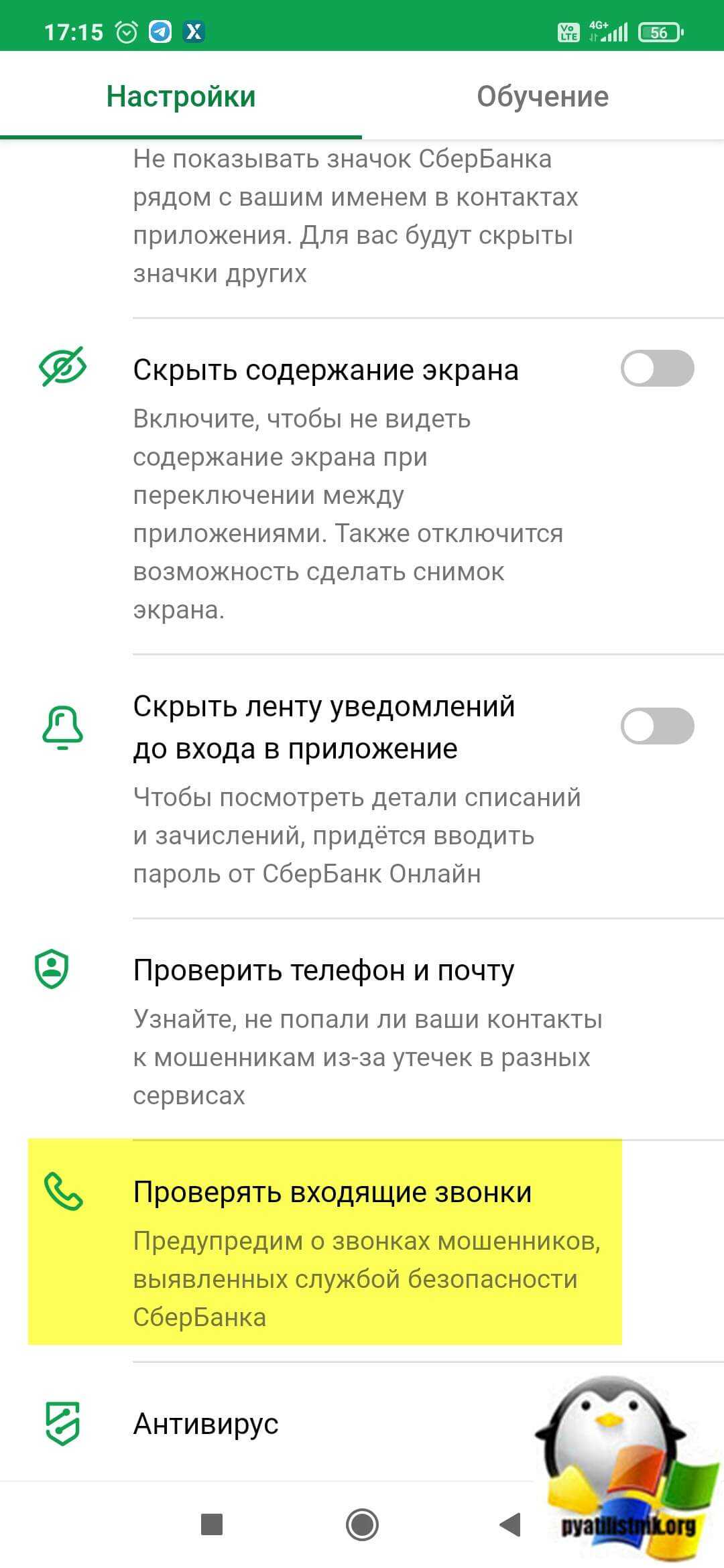 Активация функции «Проверка входящих звонков — Защита от мошенников» в СберБанк Онлайн