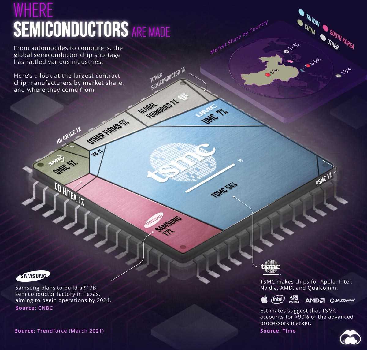 Хоть некоторые из указанных предприятий и имеют собственное производство, их мощностей недостаточно для создания самых технологичных и высокопроизводительных моделей чипов.