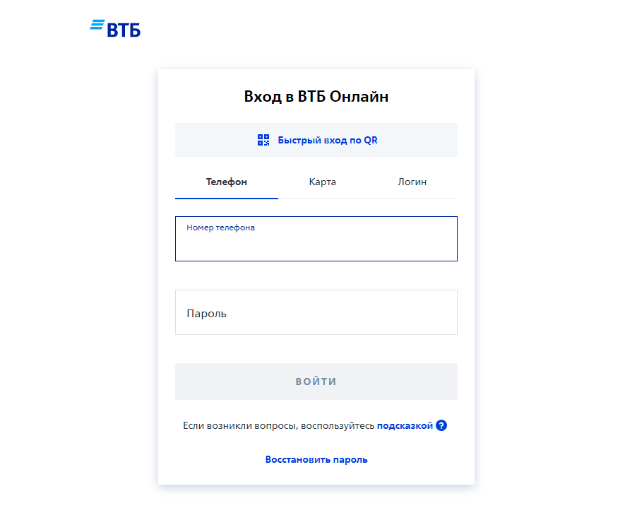 ВТБ Онлайн личный кабинет вход по номеру телефона, указанный клиентом при заключении договора с банком.