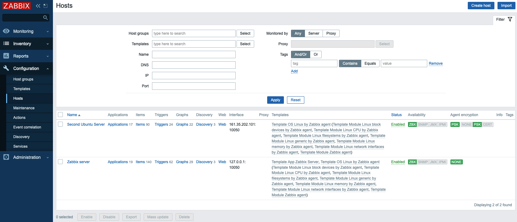 Если у вас есть еще серверы для мониторинга, войдите в каждый хост, установите агент Zabbix, сгенерируйте PSK, настройте агент и добавьте хост в веб-интерфейс, выполнив те же действия, что и при добавлении первого хоста.