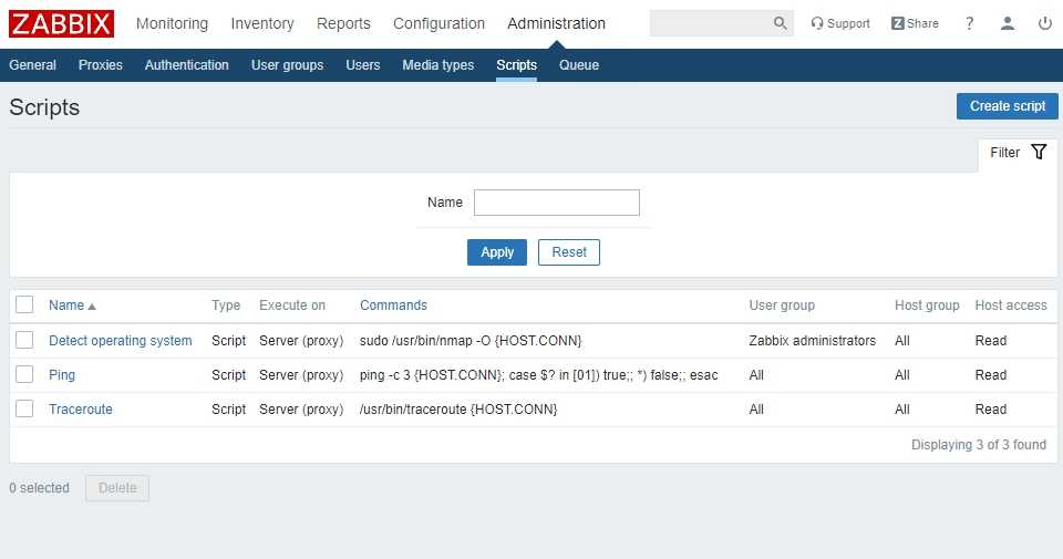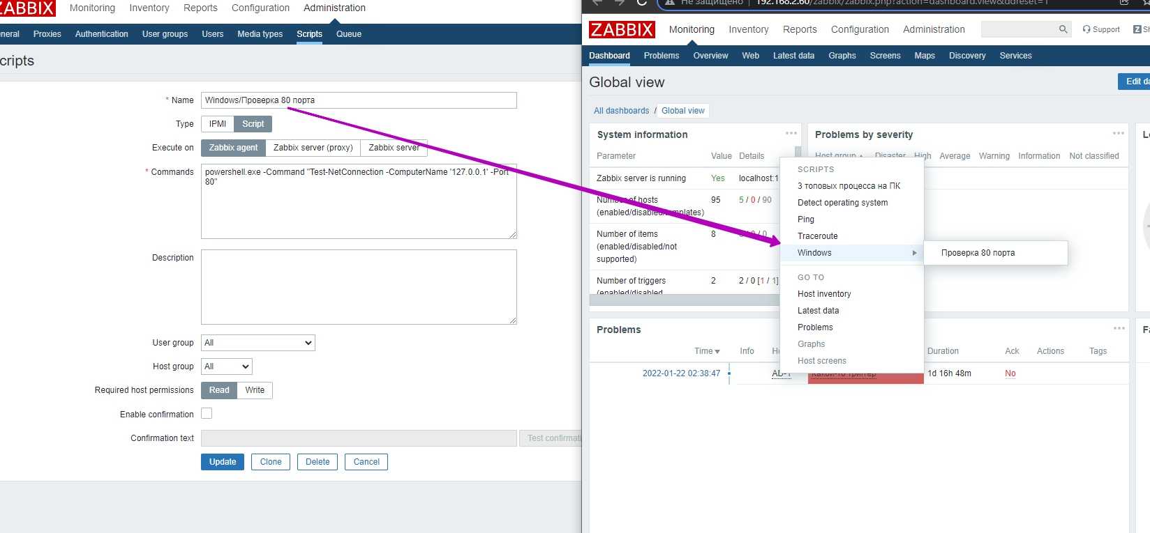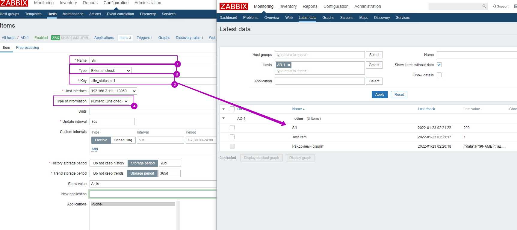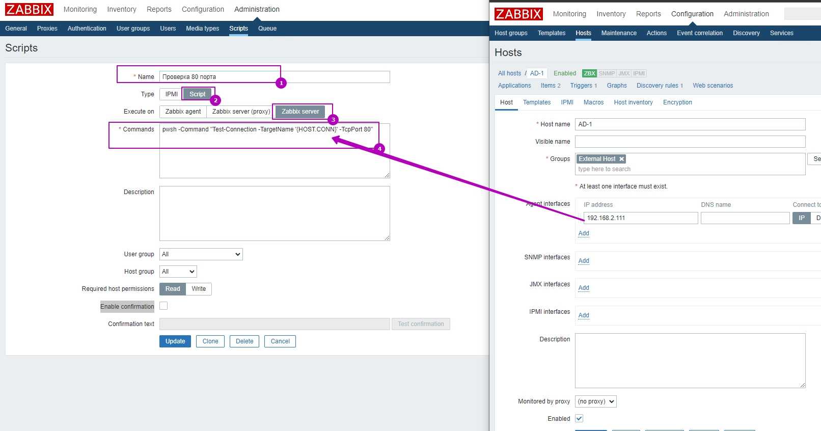 Выполняем скрипт в веб-интерфейсе Zabbix