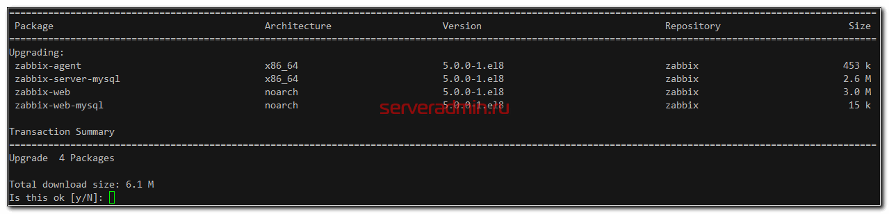 Устанавливаем само обновление zabbix на сервер Centos следующей командой:
