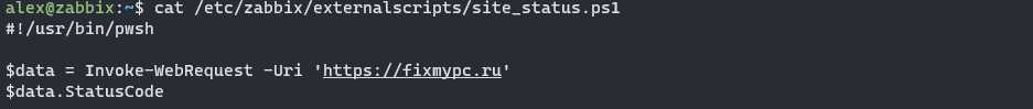 Внутри этой директории мы создаем файл со скриптом. В примере ниже скрипт называется ‘site_status.ps1’, который просто возвращает HTTP статус: