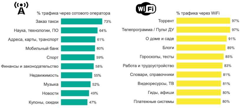 Учитывая дороговизну мобильного интернета (относительно доходов населения), существенная часть трафика все же проходит через вай-фай, преимущественно расходуясь на торренты и просмотр фильмов/сериалов.