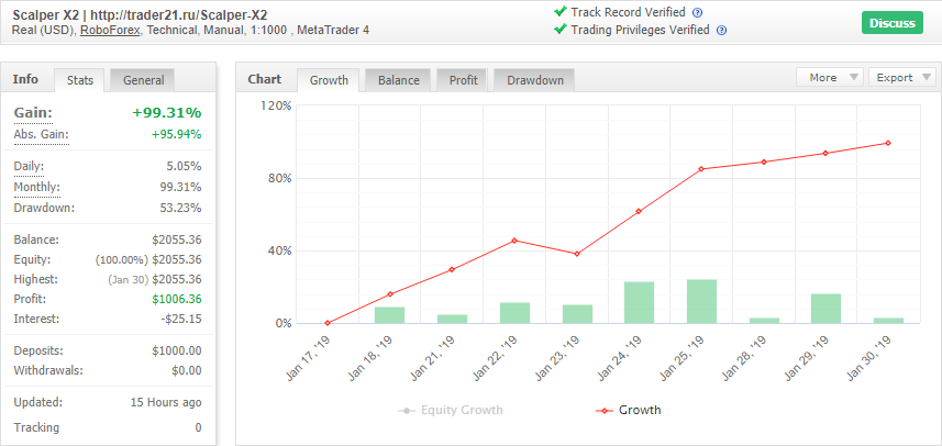 Реальный мониторинг Scalper X2: +105% за месяц!