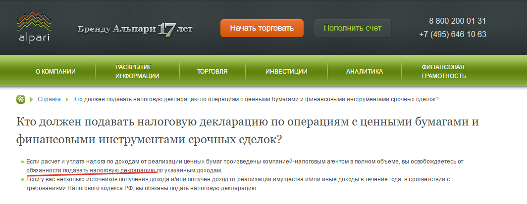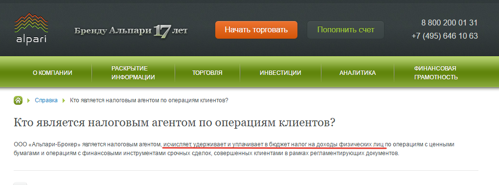 Если форекс-брокер является официальным налоговым агентом (а в письме Минфина России № 03-05-05-03/18346 от 02.04.15 специально уточняется, что уплата пошлин разрешена только лично или через официального НА), то трейдеры-частники могут не озадачиваться этой процедурой. Вот, например, как описывает свои полномочия «Альпари»: