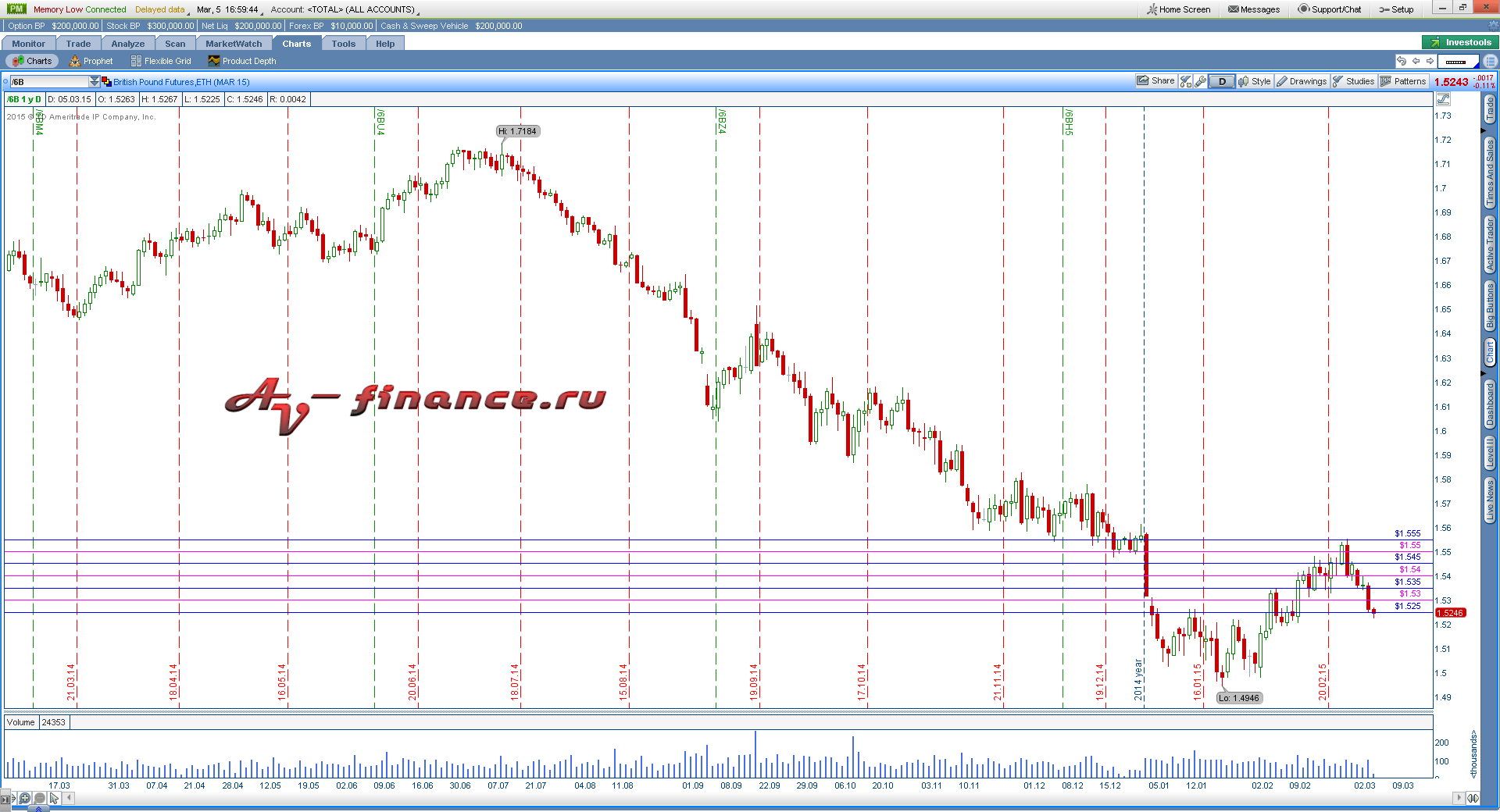 Рисунок 4. Тотальные банковские уровни форекс, сформированные через день.