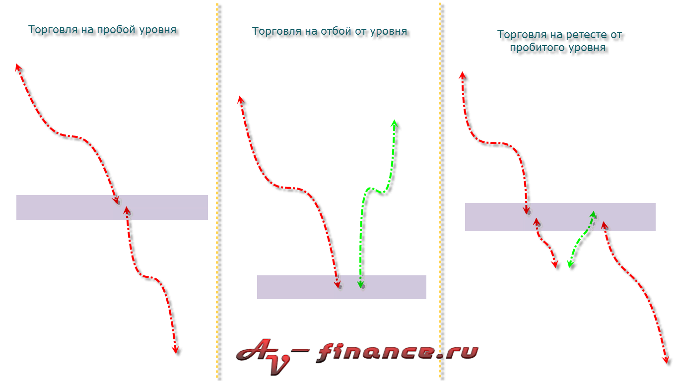 Всего существует два способа торговли по торговым уровням — это пробой или разворот цены от торговых уровней. Подробнее о каждом из них давайте рассмотрим ниже.