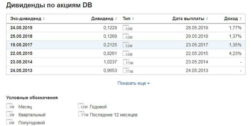 Дойче регулярно выплачивает дивиденды, однако суммы выплат в последнее время дисконтируются в сторону понижения.