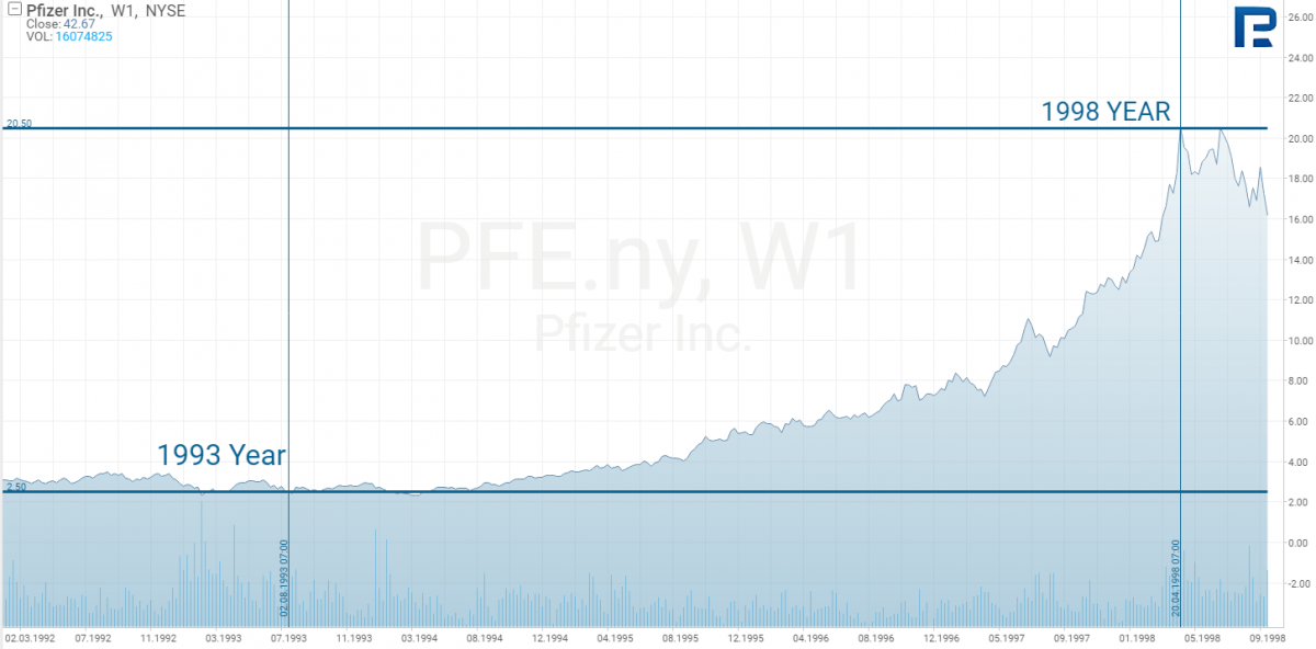 Таким образом, инвестиционные горизонты предприятия с 1982 принесли по приросту котировок акций: