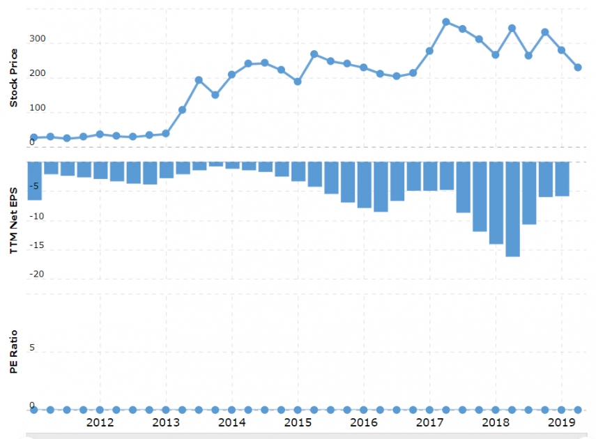 Есть перспективные компании, которые только начинают развиваться и на раннем этапе они привлекают много денег, чтобы нарастить производство или вложить их в новые исследования. В связи с этим их коэффициент P/E будет нулевым, но при этом акции могут стоить 200-300 USD. Простой пример, у компании Tesla (NASDAQ: TSLA) коэффициент P/E = 0, а стоимость акций превышает 220 USD, но при этом показатель Short Float — более 31% (это очень высокий процент коротких позиций в акции).