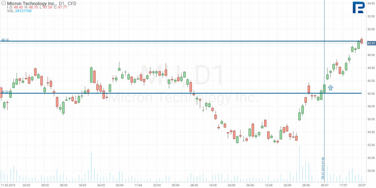 Анализ проводился 9 июля, с тех пор стоимость акций Micron увеличилась на 20%. Итоговым показателем, по которому акция была определена как недооцененная, был коэффициент P/E, который в данной ситуации оказался самым низким, при том, что чистая прибыль компании и ее доходы были самыми высокими