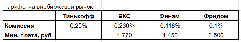 Фридом Финанс проиграл по всем статьям. Походу внебиржа это не его конек. БКС тоже не самый выгодный брокер.
