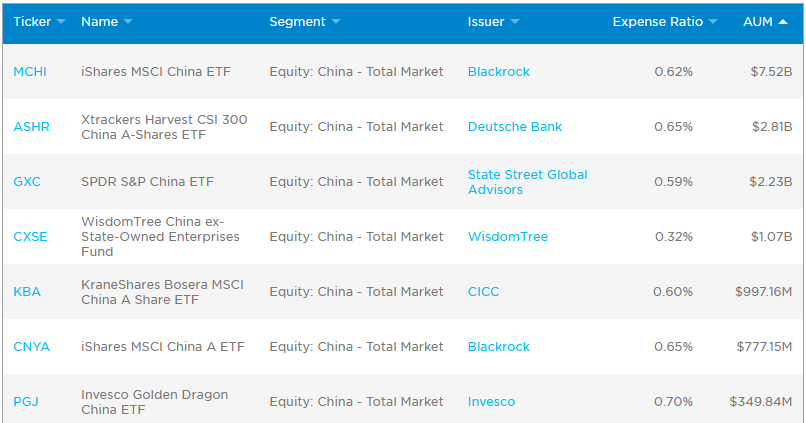 Существуют также способы вложиться в отдельные направления китайского рынка, например: