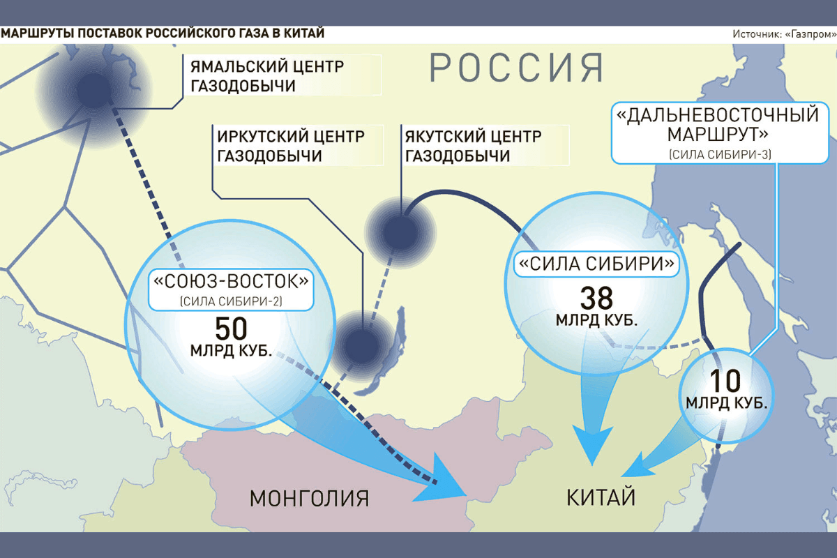 Также «Газпром» делится следующими маршрутами поставок российского газа в Китай:
