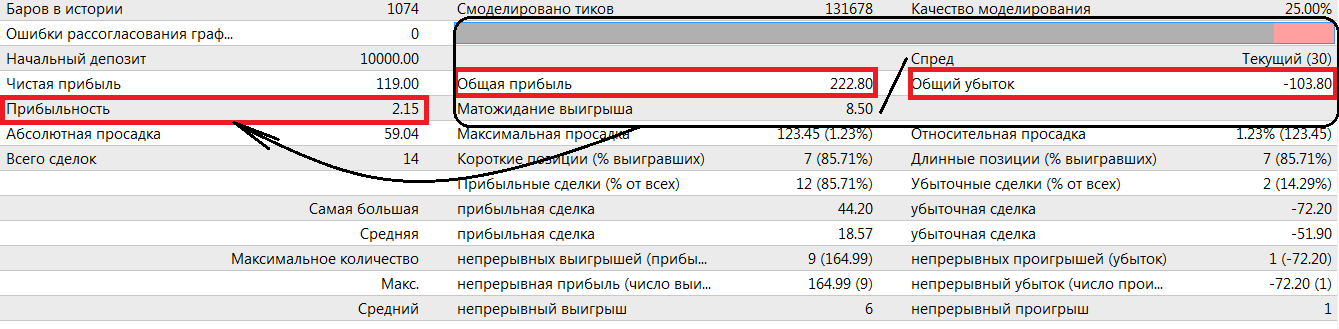 На скриншоте выше профит фактор мы отметили прямоугольником красного цвета. Так, что означает профит фактор?