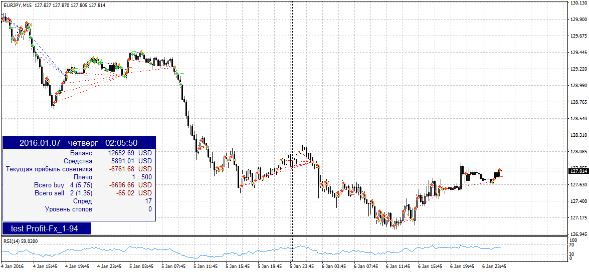 Мы проверили его работу на нескольких парах и нескольких таймфреймах, тест проводился с начала 2016 года с тем, чтобы определить выживаемость робота: