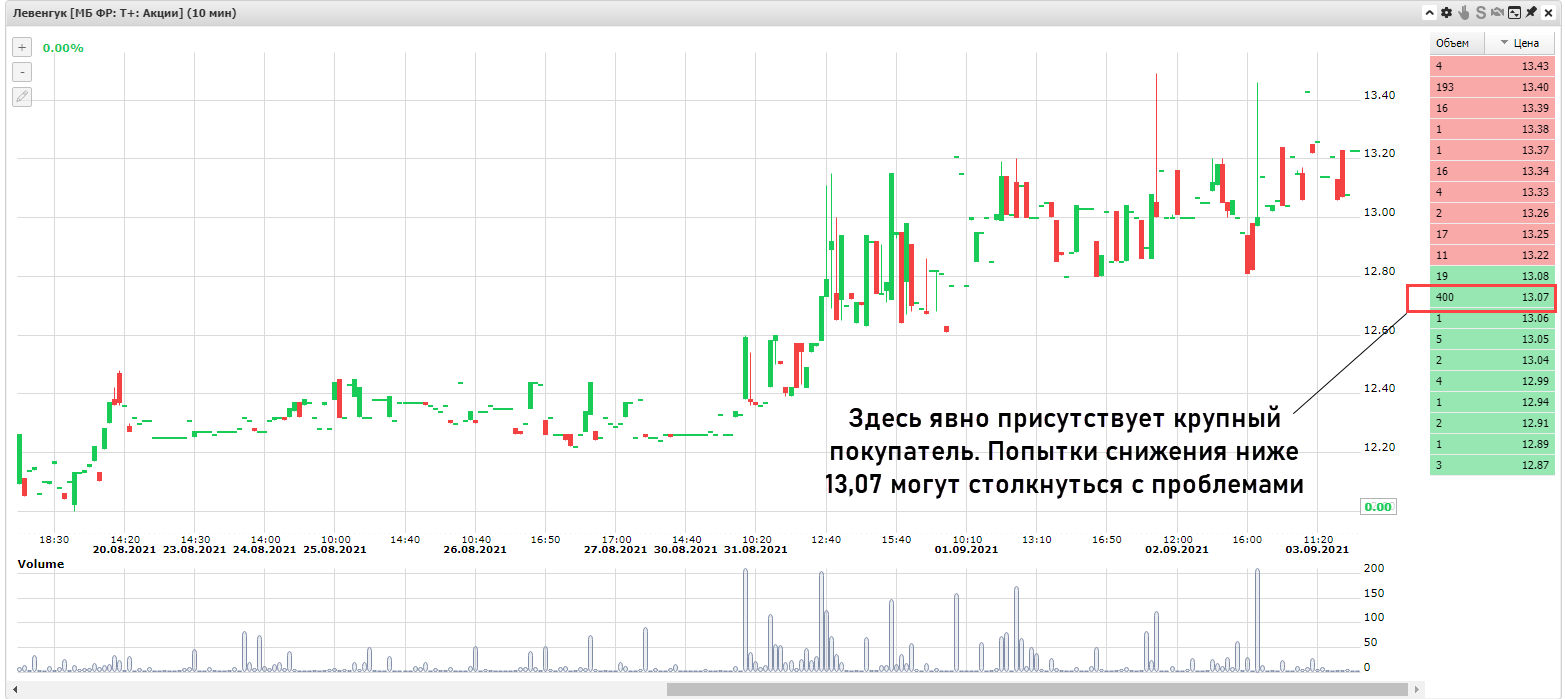 Крупные заявки. Эти заявки определяют настроение на рынке. Даже если активность на рынке минимальная, появление крупных заявок может сдвинуть цену.