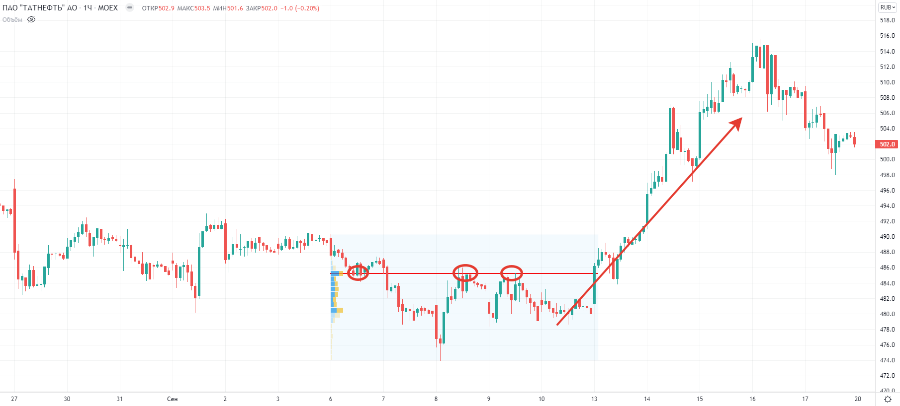 И сейчас всплывает, пожалуй, самая главная фишка горизонтальных объемов. Они очень неплохо работают именно в инвестициях.