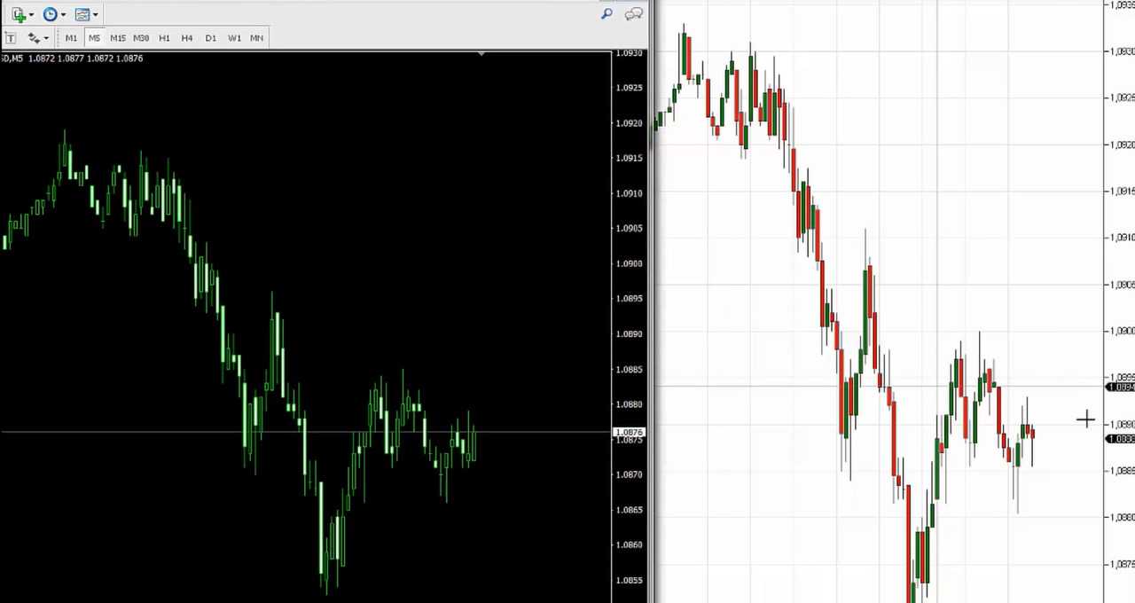 Попробуйте найти здесь 10 отличий за исключением последних свечей, поскольку данные нужно было подключить.