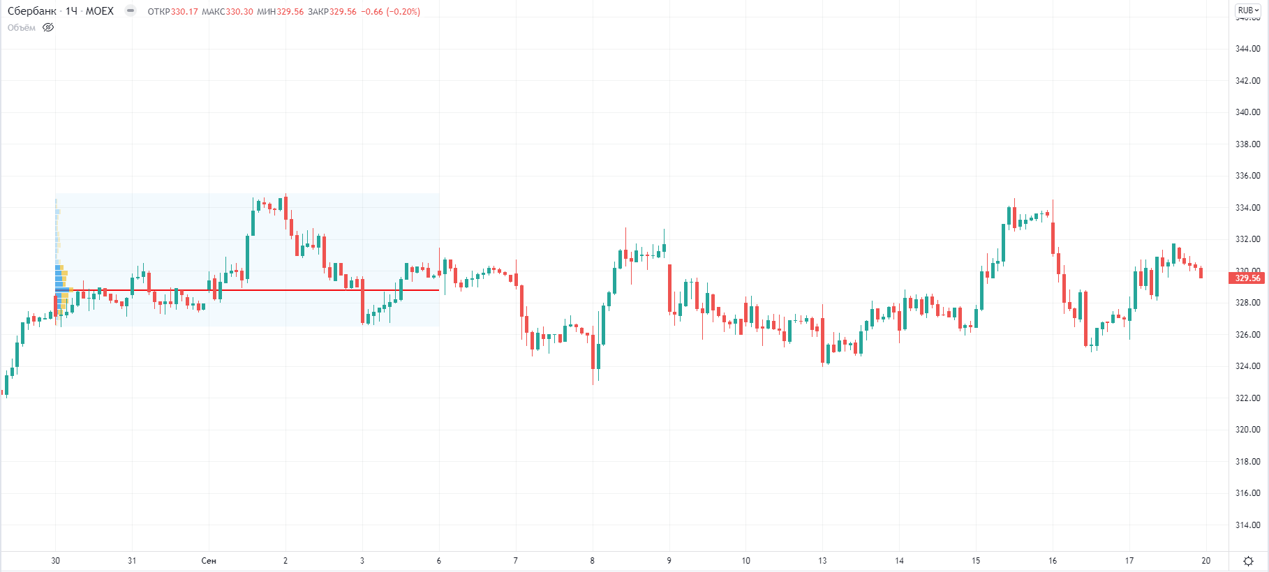 А вот так выглядит POC на графике Сбербанка. POC брал недельный