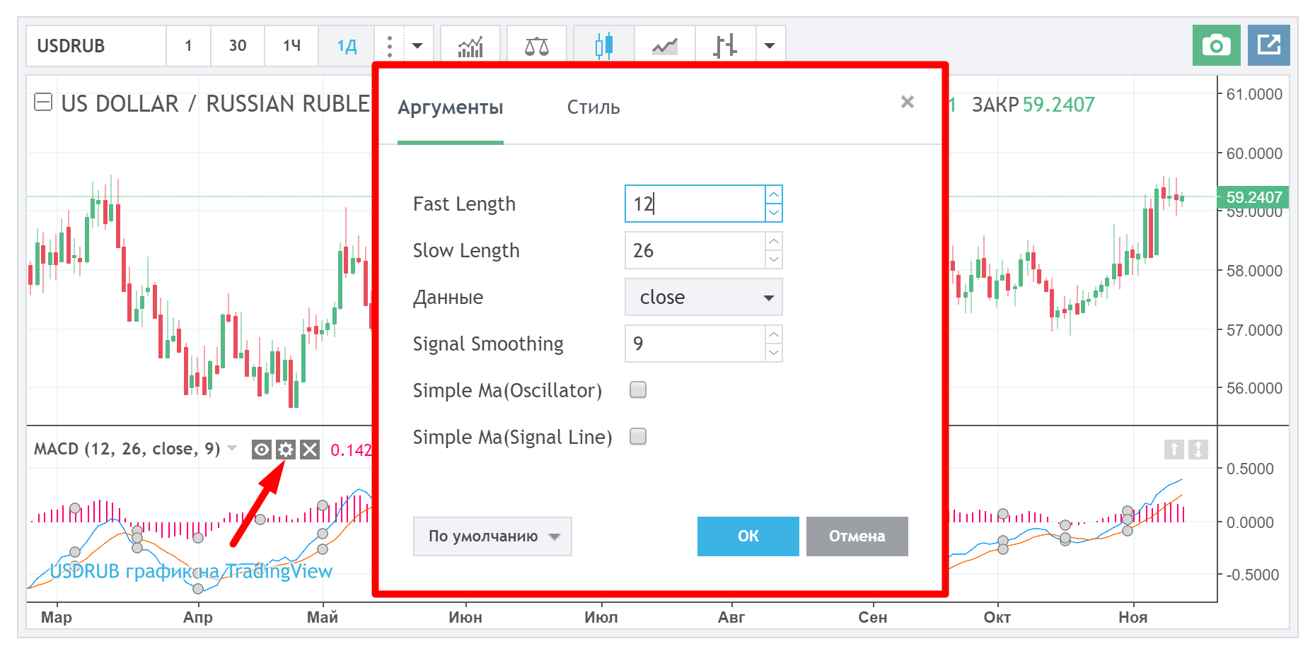 По умолчанию линия строится по ценам закрытия. Данный параметр можно изменить и построить линию по ценам открытия или максимальным/минимальным ценам. Но это бессмысленно, потому что она все равно будет неинформативной.